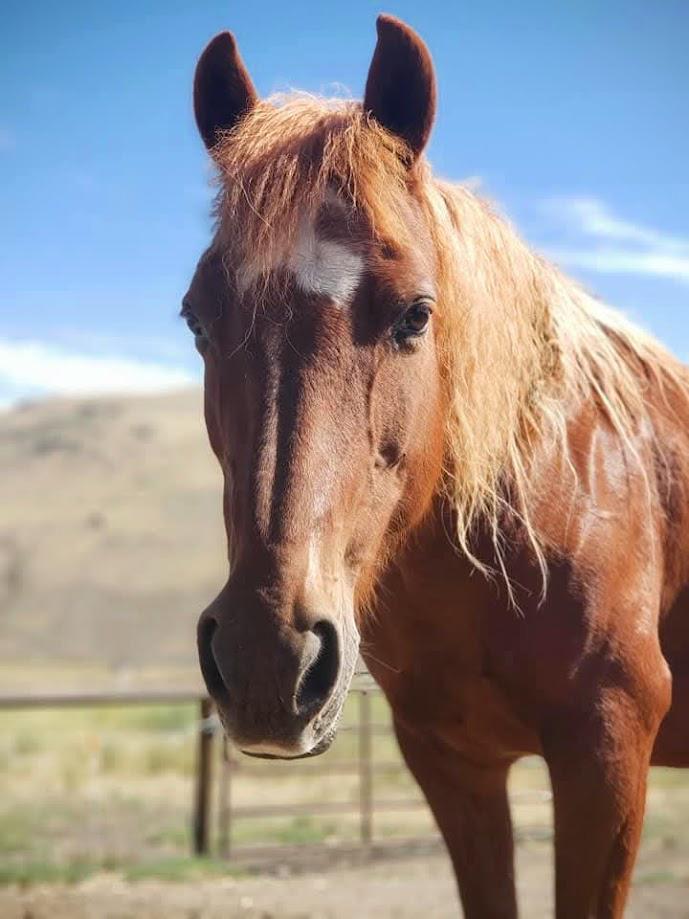 Chloe is our small but mighty – and sassy – chestnut mare. A former lesson horse and Omoksee competitor, Chloe has gently taught the ways of the horse to countless children throughout the valley. Now in semi-retirement, she keeps the two geldings in line and maintains over-the-fence friendships with the local wild horses who visit frequently.