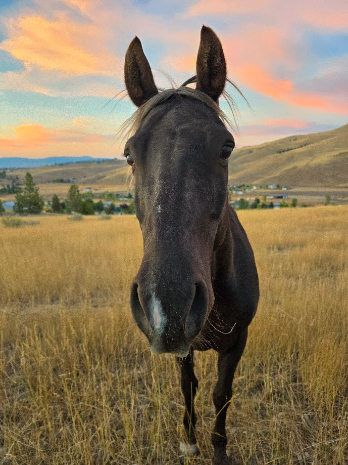 Teako is our chocolate-colored, bright-eyed, and contemplative herd manager. A registered Rocky Mountain Saddle Horse, he’s traversed hundreds of miles throughout the wildlands of Montana and Idaho. Teako loves hitting the trails around Missoula and enjoys interacting with his human partners.